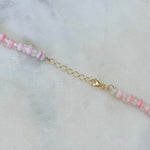 Introducing your new signature layer, the Rose Quartz & Moonstone Beaded Necklace is a soft glow moment you didn’t know you were missing. Strung with natural rose quartz for love energy and moonstone to keep your intuition dialed all the way up, this piece is pretty and powerful. Wear it solo for that minimal magic or stack it with gold chains and charms. Finished with our 14K Baby Gold tag for a little extra luxe.