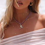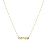 Meet our Sapphire Bar Chain Necklace. Crafted with charm and uniquely elegant, this stunning piece features five oval gemstones, each one shimmering with its unique pastel hued sapphire, set in a sleek 14K Gold chain. From soft pinks to cool blues, these gems are all about casual cool elegance. Add a perfect pop of color and sophistication to any outfit. Ideal for brunch dates, vacay trips, or just everyday chic.