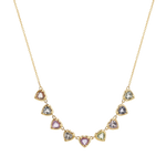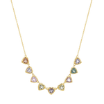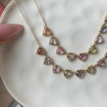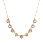 You will feel like a royal in this magnificently regal touch to your jewelry collection. A jaw dropping array of 9 heart cut sapphires. Hues ranging from Lilacs, Green, White and Blue strung along our best selling 14K Gold cable chain necklace. A Babygold curated color collection of the finest Sapphire gemstones and a powerful statement of love for yourself or someone dear.