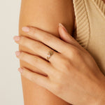 I have this ring with my name and my husband’s name. It’s both dainty and strong - no dents or bends in the band the way some dainty rings bend.
