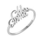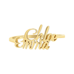 Our Script Custom Double Name Ring is the perfect ring for someone who wants to showcase two names effortlessly on their finger. Each ring is custom CAD and made to order. Ring height is approximately 8-10mm depending on the sequence in letters. Each ring is designed by our CAD team to make sure it looks and wears perfectly. Attached by a 1.2mm wire band, this ring will soon become your new favorite.