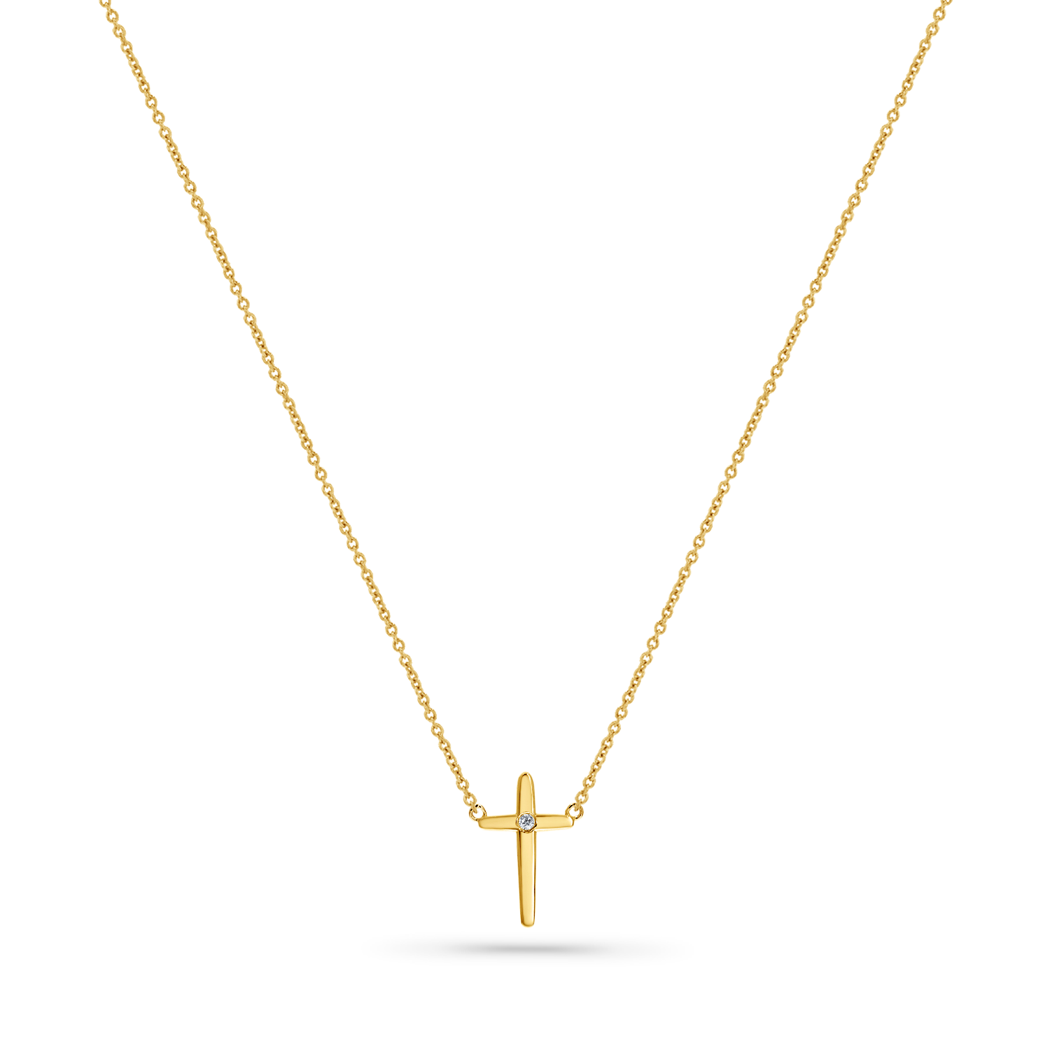 Your new everyday shine our Sculptural Diamond Cross Necklace features a sleek, sculptural cross accented with a single diamond at its center. Minimal, modern, and designed to catch light from every angle. The solid 14K Gold cable chain lays softly against the skin, giving the piece that easy, wear-forever feel Babygold is known for.
