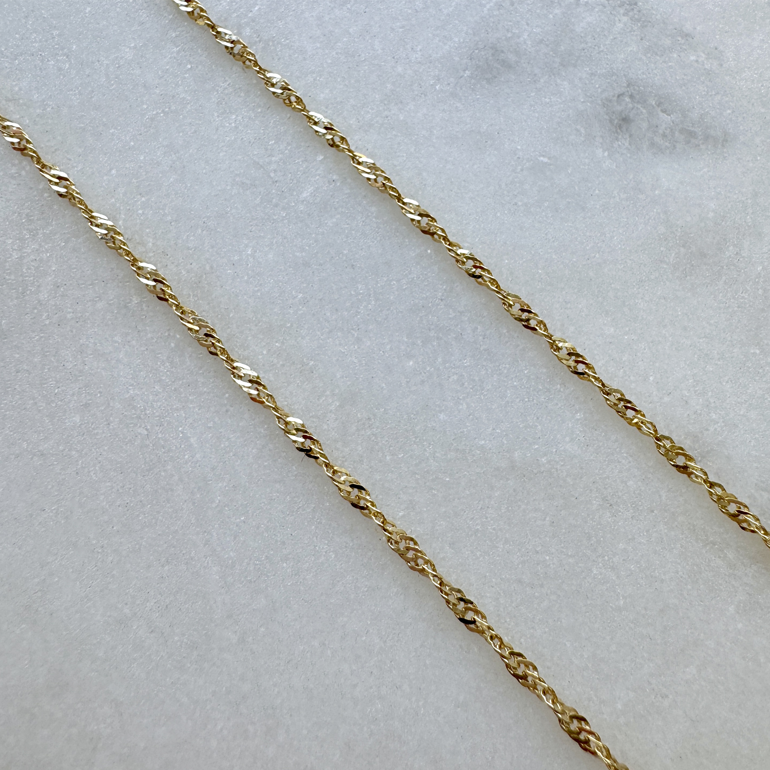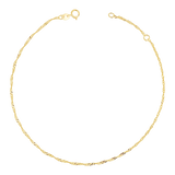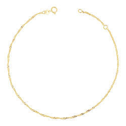 Introducing our Singapore Chain Anklet. Your ankles will thank you when you drape this sparkling beauty along them. Our Singapore Chain Anklet has a sparkling twisted silhouette and you will love how it captures the light to illuminate your shoe game. Your favorite new way to dress up will be feet first. Just put our Singapore anklet on and never take it off. Brought to you by Babygold.