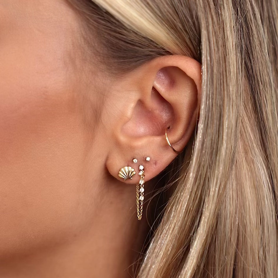 Small shell, big shine. Our Soleil Scallop Seashell Stud Earrings are crafted in solid 14k gold with a smooth, sculpted fan shape inspired by sun-warmed seashells. Petite and polished, they’re made for everyday wear, perfect on their own or stacked with your go-to studs and huggies. These are the ones you never take off.