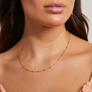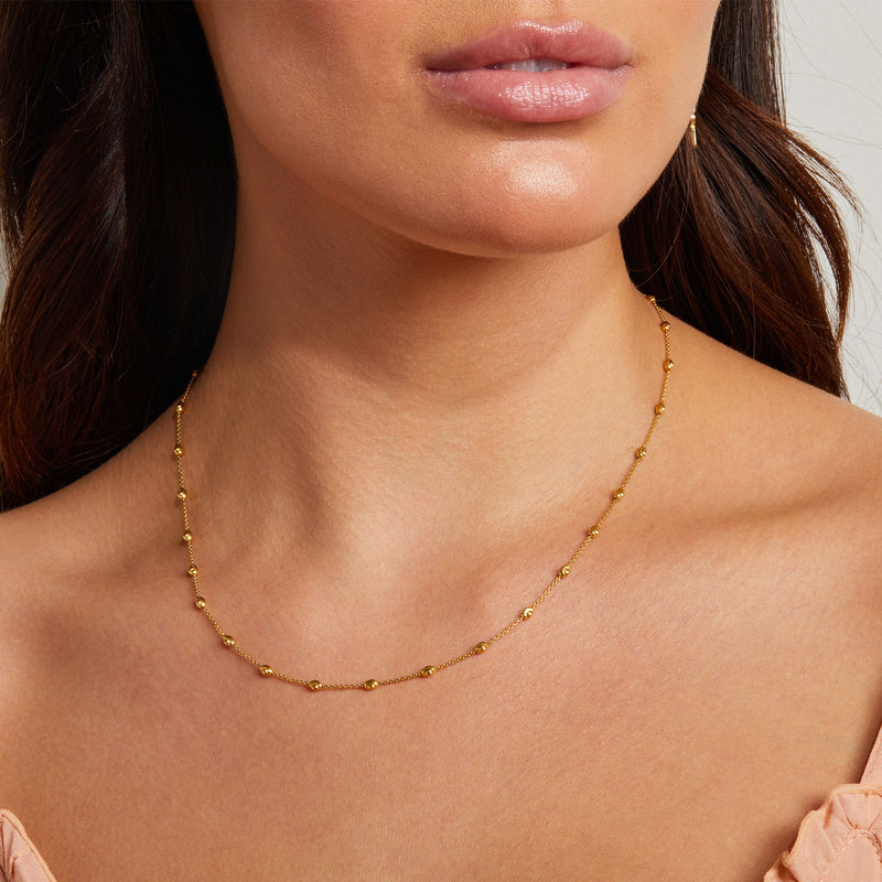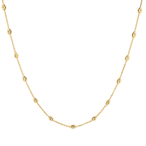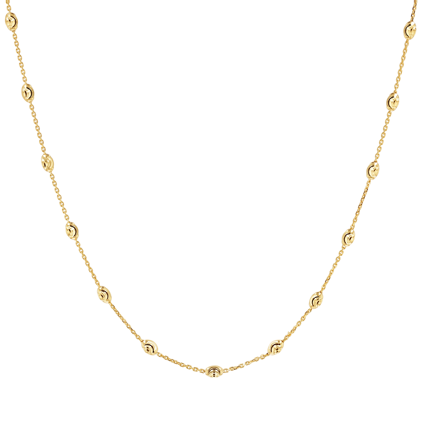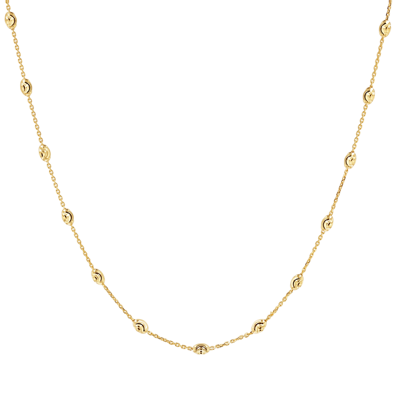 Made in 14K solid gold, our stunning Spaced Mooncut Bead Necklace is a gorgeous edit to your basic chain. Each bead is Diamond cut to create an imaginable luster that will never fade out.  Stack it or let it shine on its own! Pairs beautifully with the Moonlight Sphere bracelet or any of our beaded bracelets.