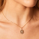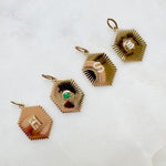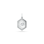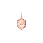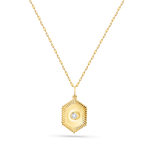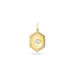 Introducing your new go-to for that low key luxe. Our Fluted Hexagon Diamond Solitaire Charm is the everyday statement, reimagined. Crafted in 14k Gold in a meaningful hexagon shape it features a sunburst texture and a single bezel-set diamond at center that catches light from every angle and compliments from every direction! Perfect worn as a solo medallion or layered with your favorite Babygold chains!