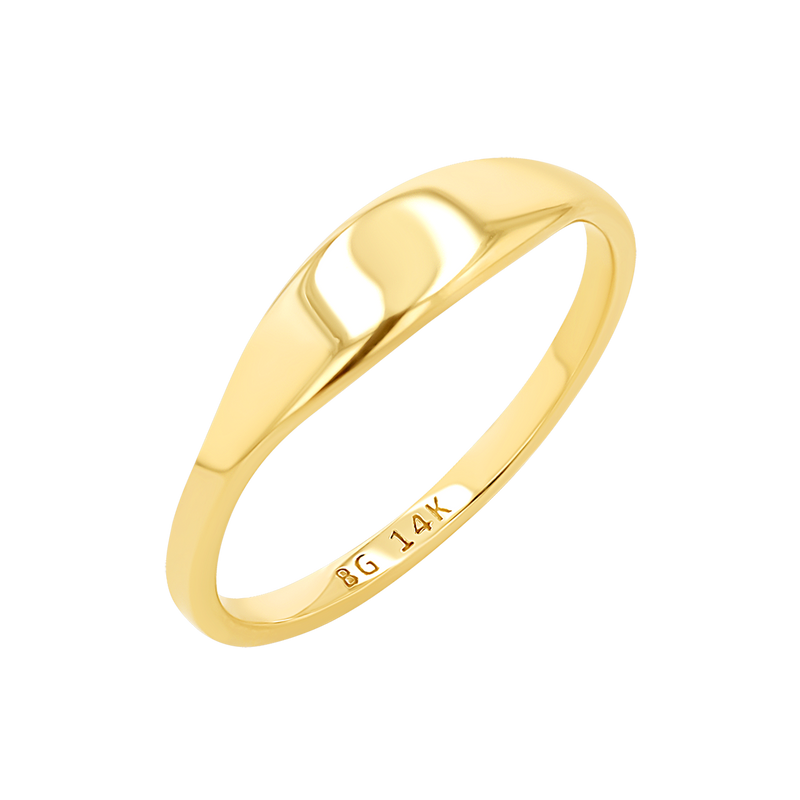 The perfect tapered Gold band has arrived! Elegant yet cool with a unique curved shape gives the appearance of a chunkier façade and lends a unique twist on a classic 14K Gold endless band. Perfect for stacking or solo!