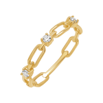 Now you can represent our Best Selling Paper Clip chain as a chic stackable ring! Part of our new Paper Clip ring collection, this beauty is a delicate and sleek style with .10cts of round prong set diamonds in between links. Stack all 3 of our paper clip rings together or wear this one alone for a minimally elegant look. Crafted in 14K Gold and available in Yellow, White and Rose!
