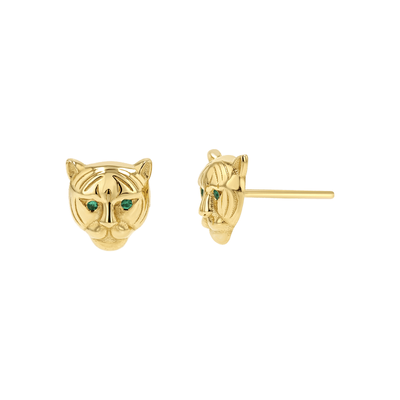 From our Year of the Tiger Collection, these Tiger stud earrings are sure to make this year one with major flair. These gorgeous emerald encrusted stud earrings will add a dramatic pop to your ear stack but look just as stunning alone. Pairs perfectly with the Tiger Necklace.