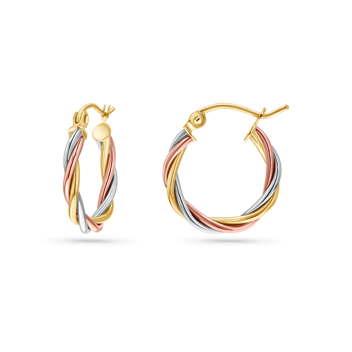A little twist, a lot of shine. Our 14K Tri-Color Twist Hoops bring yellow, white, and rose gold together in one effortless braided design. Lightweight with a smooth polished finish, they’re the perfect everyday pop! So easy to wear and mix and made to match every metal in your stack. You won't stop reaching for these beauties.