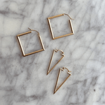 High Polish and fabulous these elongated triangle tube hoops are an edgy and angular. Perfectly fun day or night, you'll surely enjoy all the compliments and head turns with these beauties on!