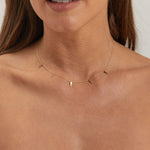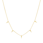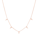 This gorgeous 14K Gold Necklace has the right amount of sparkle and edge. Five triangles sit on a 14"-15" adjustable cable chain. Pairing beautifully with any 16'-18" necklace, especially the Tiger Necklace from the Year of the Tiger Collection.