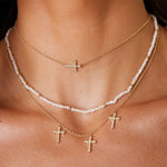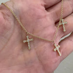Introducing our Trinity Diamond Cross Necklace, a stunning reimagining of a timeless symbol, offering triple the sparkle with three radiant diamond-encrusted crosses. Crafted in 14k Gold, the fine cable chain beautifully showcases each cross, all meticulously set with brilliant cut diamonds that catch the light from every angle. The design offers a balance between classic faith and modern style, making it an effortless choice for both day and night! Whether you're layering it with your favorite chains or letting it shine on its own, the Trinity Diamond Cross Necklace makes a meaningful statement.