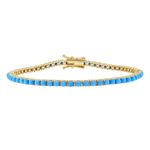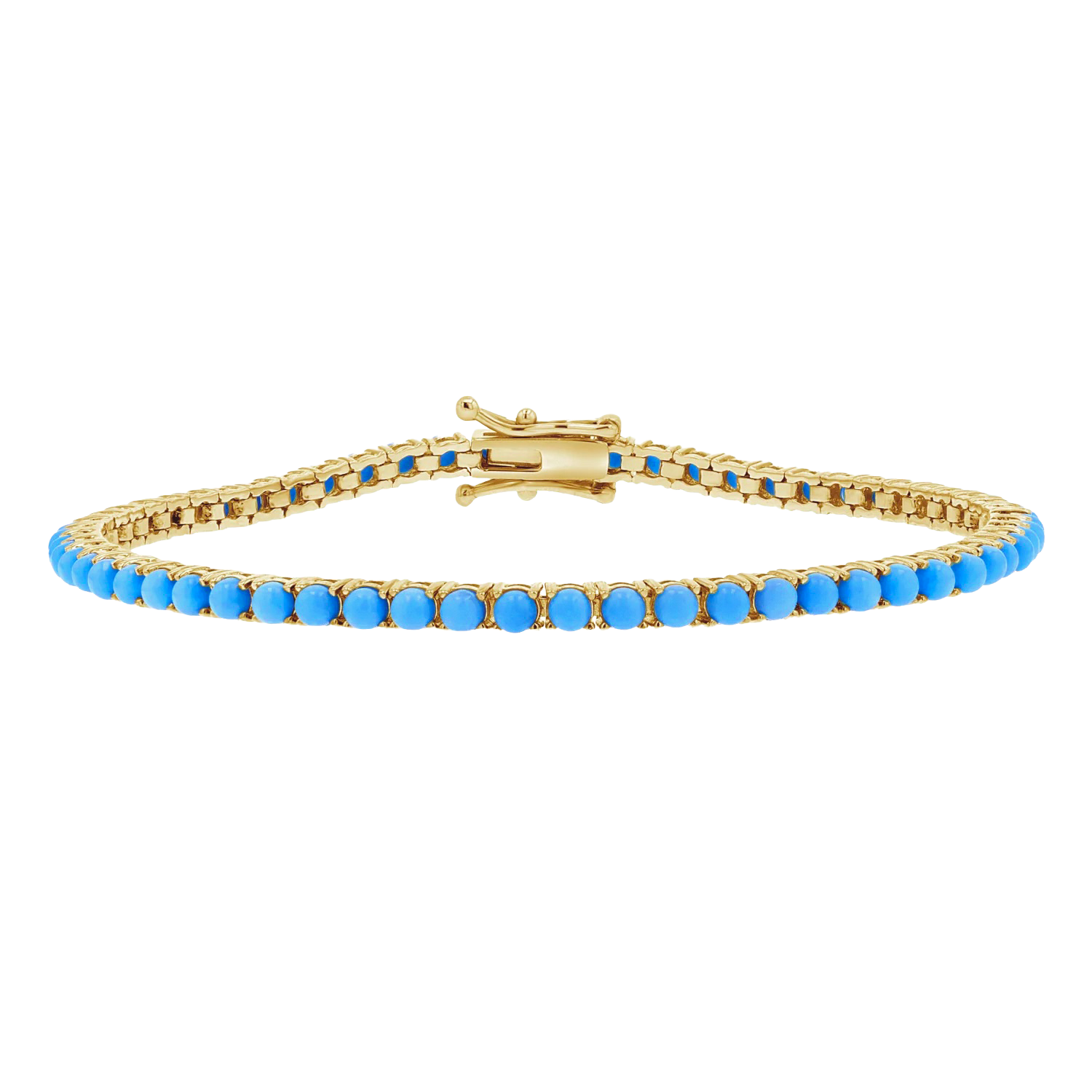 Finally a Turquoise Tennis Bracelet that you can wear day and night! Expertly crafted and inlayed with natural turquoise stones, this is the perfect pop of color to add to your stack. Pairs beautifully with our Turquoise Tennis Necklace