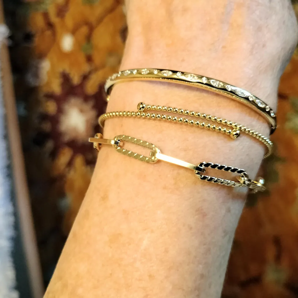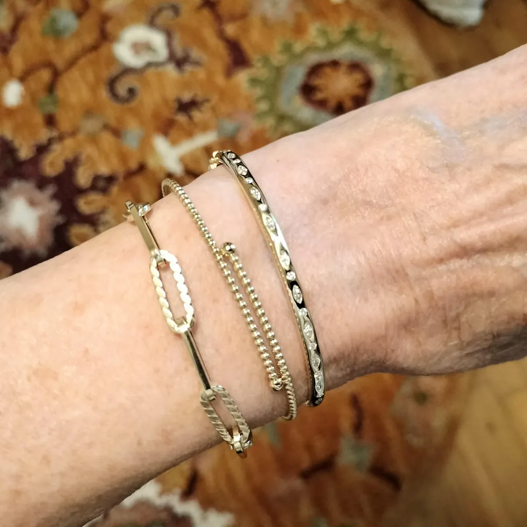 As if our iconic Paper Clip bracelet could get any better, now this best seller is adorned with interchanging twist accent links for an unprecedented update! Elongated twisted paper clip links add classic chic that will live in your collection for years to come. Solid 14K Gold and available in Yellow Gold.