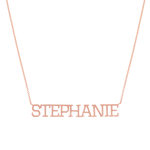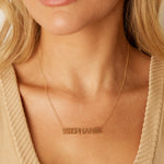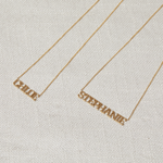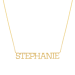 A distinct and bold way to flaunt your name or a loved ones. Our new 14K Solid Gold Varsity Name necklace will shine as bright as you on your neckline. The perfect signature piece in the center of your stack, you will never tire of all the ways to style this modern classic. Available in 14K Yellow, White & Rose gold and many chain lengths, BabyGold gives you full control of your custom name necklace.