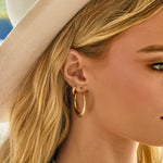 This timeless piece proves that good taste never goes out of style. Crafted in 14k Gold with a gorgeous twist detail that draped the center of the earring. Tapered, Lightweight but beautifully crafted. Pairs beautifully with our new diamond cut hoops.