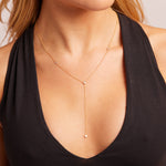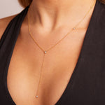 The handcrafted Baby Diamond Lariat Necklace is hand set with staggered gem(s) of your choice. Whether you choose one gem or opt to mix it up for a more colorful palette, this delicate chain and classic design will elevate your style.
