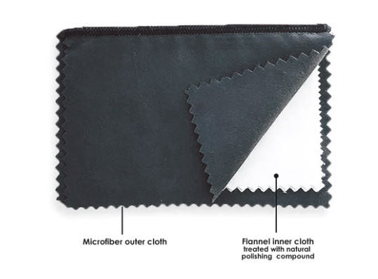 Our polishing cloth is infused with a gentle and effective polishing compound that will bring back the luster and shine to your jewelry.  Great for use on gold, silver, platinum, and other precious metals.