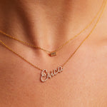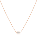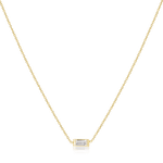 Our Baguette Diamond Necklace features a natural VVS quality baguette cut diamond effortlessly balanced within a modern and minimal gold bezel. A staple necklace for any stack. Wear this solid 14K necklace everyday!