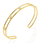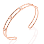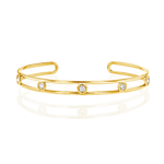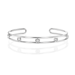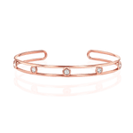 The 14k Bubble Diamond Cuff is handset with 5 large diamonds totaling 0.40cts. This unique design creates a floating diamond look to your wrist. A very high end luxurious bracelet that wears very comfortably on the wrist.