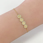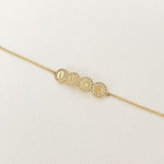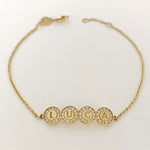 The handcrafted Baby Gold Custom Diamond Bubble Bracelet is made in solid 14K gold. Each letter of your personalized engraving is surrounded by beautiful VS quality natural diamonds.