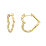 Our Best Selling Heart Hoops have a new look featuring even more sparkle! A chic update featuring 0.36 ct diamonds adorn the facade of these cult favorites! So add a dose of love to your collection with these 14K Gold Diamond Heart Hoops. These heart hoops sit sideways on the ear with a snap closure. Fun and flirty and always representing love, these stunning diamond hearts will surely make a positive statement wherever you wear them.
