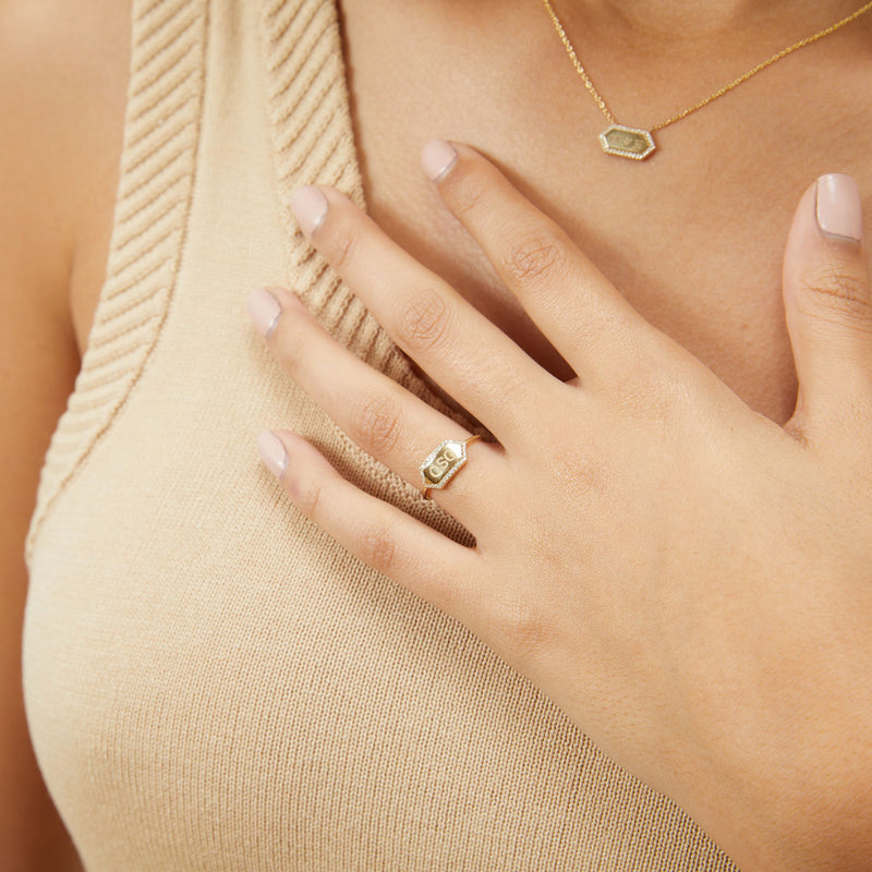 I purchased this ring and had my daughters initials engraved on it. It is even more beautiful in person. It arrived on time and in beautiful gifting presentation. My daughter hasn’t taken it off since the evening of her birthday. It is perfect!