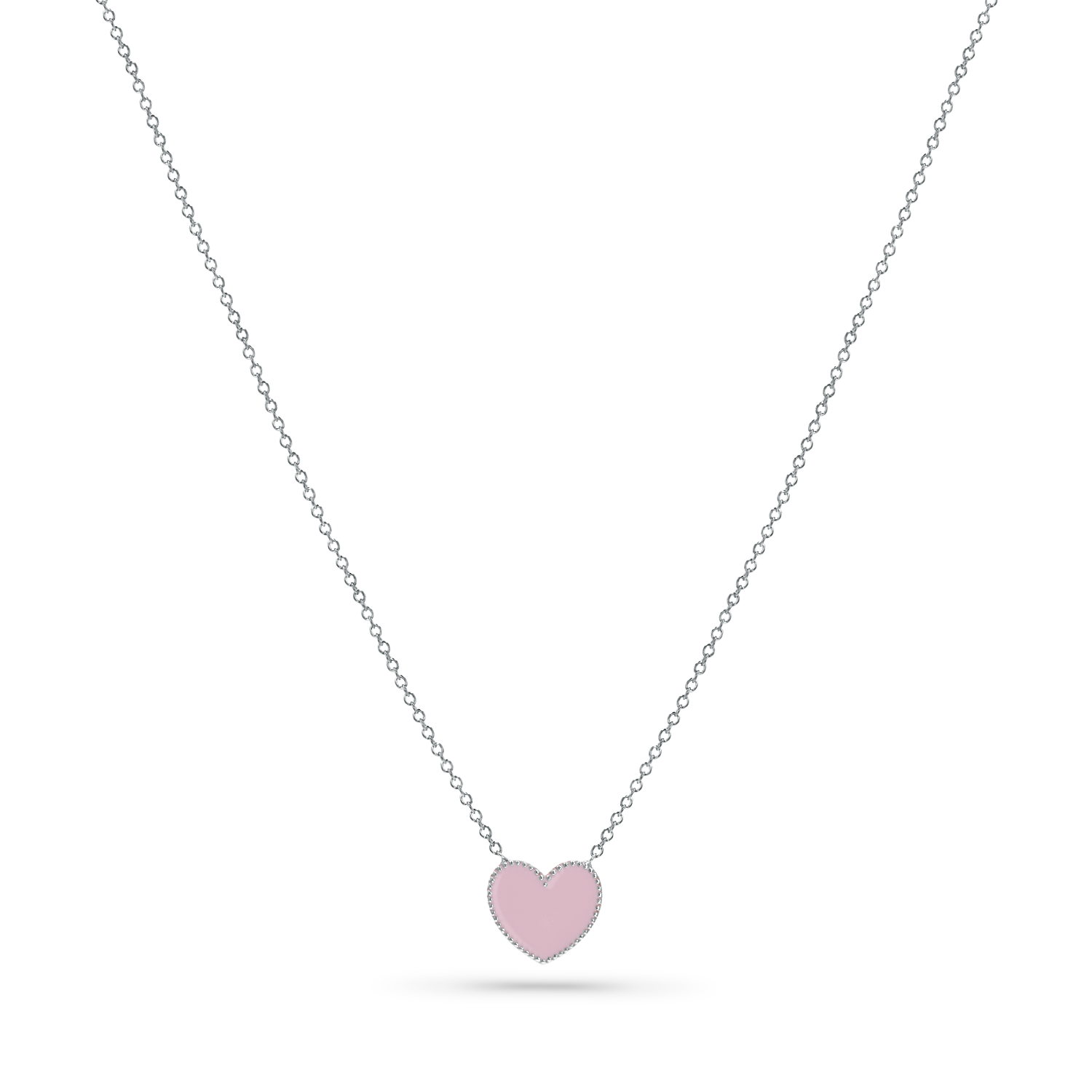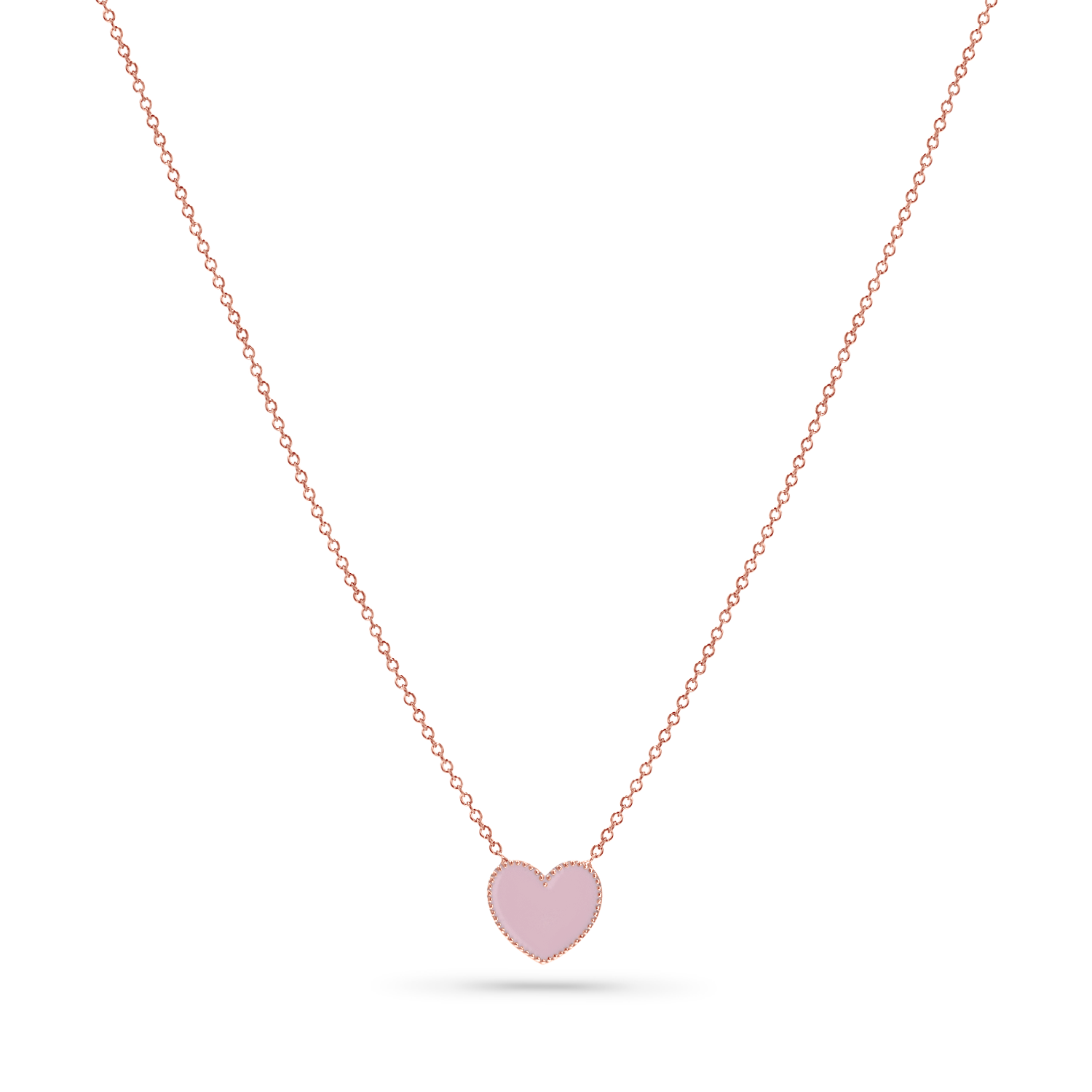 The handcrafted 14K gold Enamel Heart Necklace is available in various colors and sizes. This playful design adds color and fun to your day!