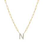 Our 14K solid gold Grand Initial Paper clip necklace is this years hottest personalized look! Introducing a bolder and bigger diamond initial letter bracelet for the season.  This trendy yet classic necklace is the perfect customizable initial piece. The Paper clip chain links allow for adjustable wear so sizing up or down is no issue. Sturdy, bold and personalized!
