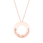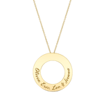 The 14k Grand Personalized Circle Disc can fit up to 30 characters. Tell your story by adding the names of your loved ones or a phrase that means the world to you.