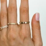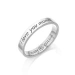 This 14kt solid gold ring is engraved with the words "i love you mama" with an option for a custom engraving inside. Wear your mama title with pride or gift the special mama's in your life with this unique ring.
