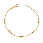 This dainty bracelet is a unique spin on the bead bracelet with clusters of 3 beads spaced apart by a delicate gold chain. It's a classic staple that can be stacked or worn on its own.