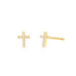 The 14K Gold Kids Pave Cross Earrings are handset with approximately 0.10ct of diamonds