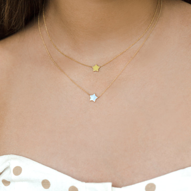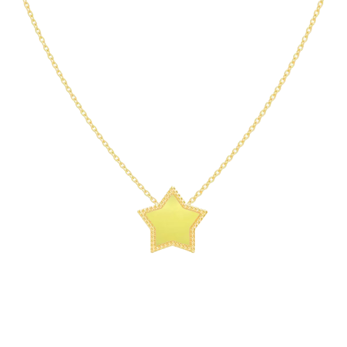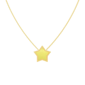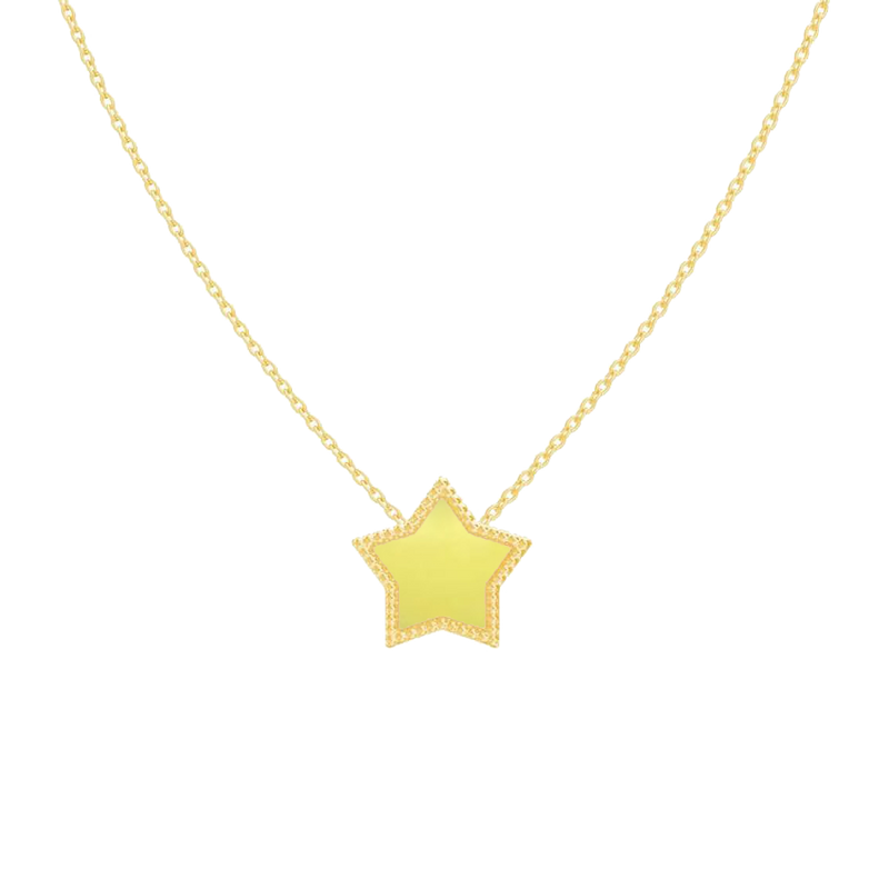 The handcrafted 14K gold Enamel Star Necklace is available in various colors and sizes. This playful design adds color and fun to your day!