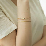 The 14K yellow gold moon cut bracelet is a stunning and simple piece that can be worn everyday. Stack it or let it shine on its own!