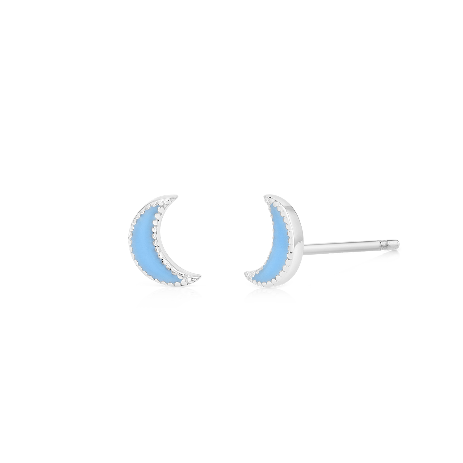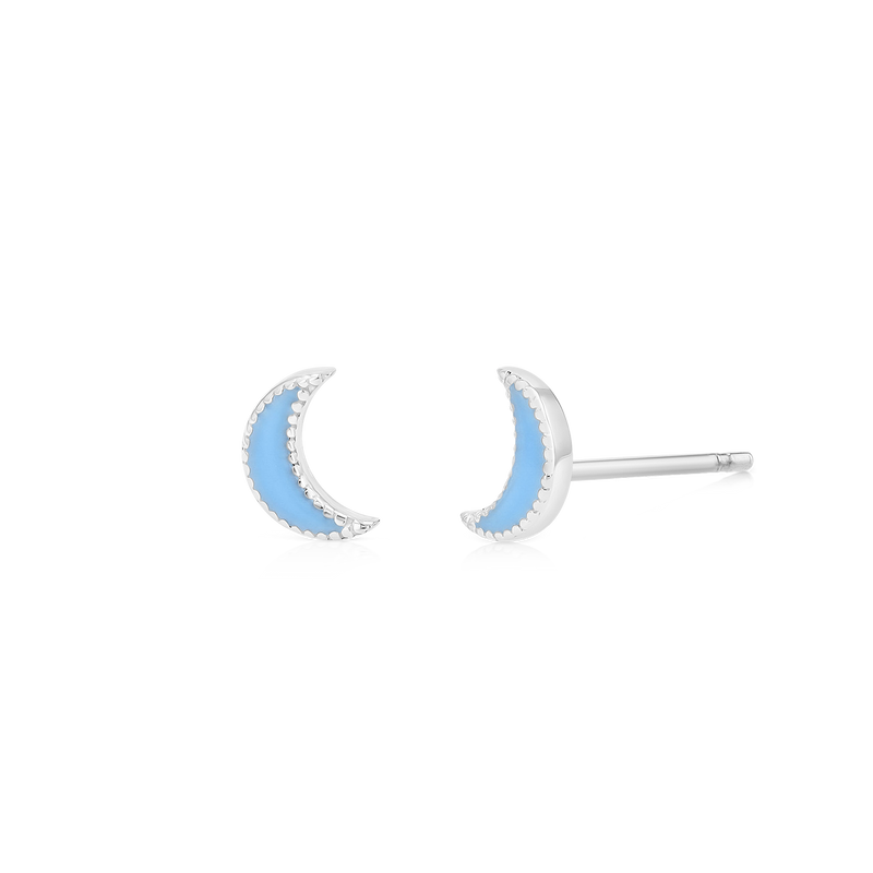 The handcrafted 14K gold Enamel Moon Earrings are available in various colors. This playful design adds color and fun to your day!