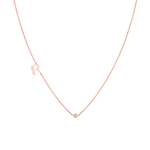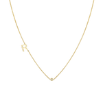 The 14k Letter Diamond Bezel Necklace is handset with a 0.05ct solitaire diamond.