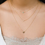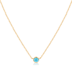 The 14K Turquoise Solitaire Necklace is hand set with a beautiful turquoise stone. This classic necklace can be worn everyday as a small statement piece in your jewelry mix.