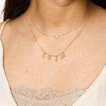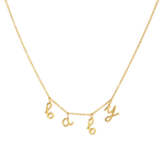 The 14k gold mini letters "baby" necklace is perfect for your little one. Each letter hangs independently on a delicate chain. Custom mini letter necklaces are available. Email info@babygold.com with your requests!