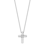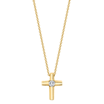 This modern and sleek Center Diamond Cross necklace is handset with a large 3mm natural diamond. The Cross brings hope and faith to many. Wear it as a reminder of strength and love.