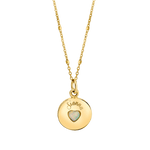 This 14K Opal Heart Necklace is stunning and hangs on a sparkle chain. This is the daintier smaller version of the Grand Opal Heart Necklace. Can be personalized and has a natural Australian Opal perfectly hand carved into a heart in the middle. Wear it everyday and pair it with another of your favorite Baby Gold charms.