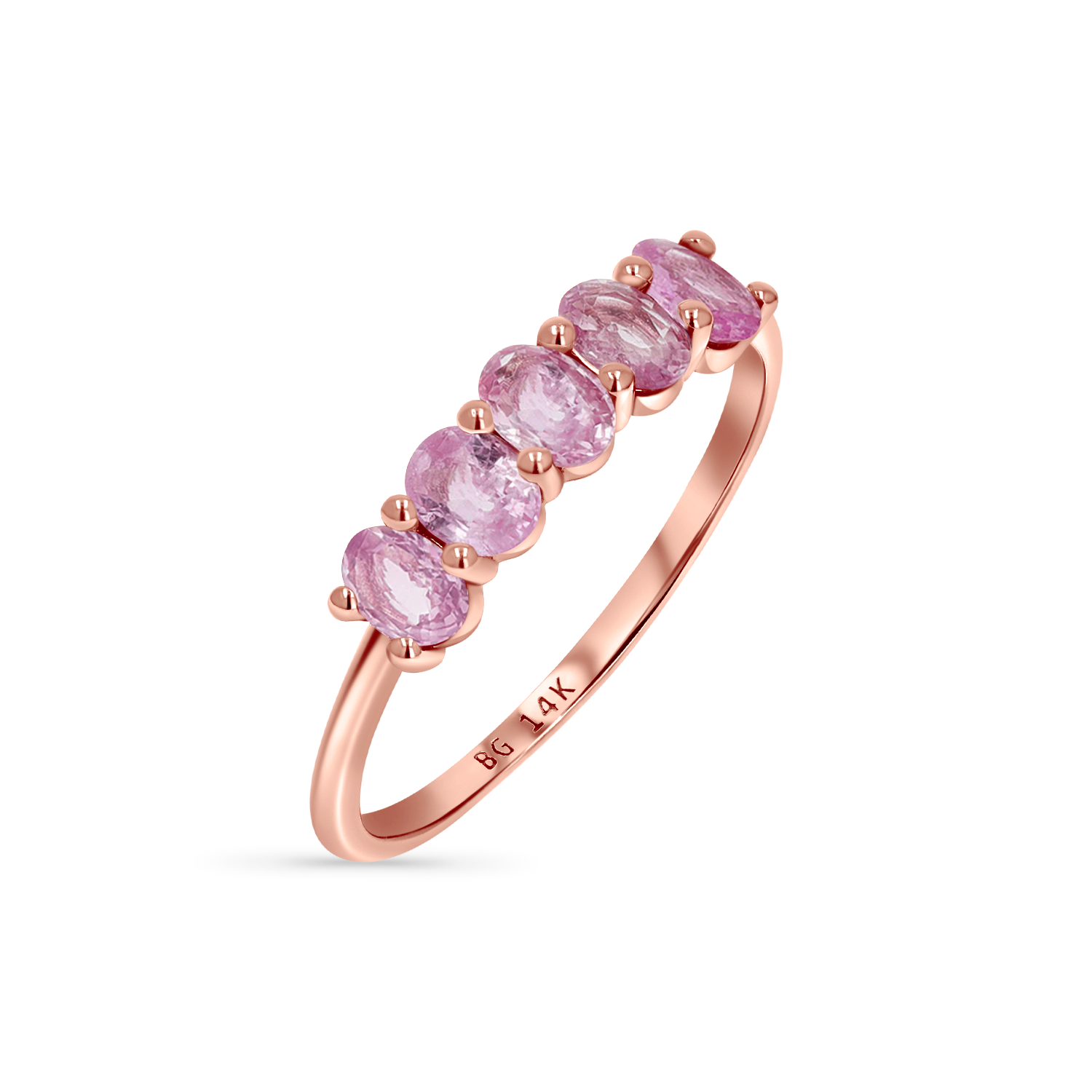 Add a subtle touch of pink to your stack with our Oval Pink Sapphire Five-Stone Ring. Crafted in luxurious 14K Gold, this ring features a row of beautifully faceted soft pink sapphire gemstones. This ring makes for the perfect delicate statement ring to finish off any layered look.