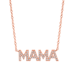 The 14K mama necklace is handset with 0.20ct of diamonds. Wear your MAMA title with pride or gift your favorite mama.