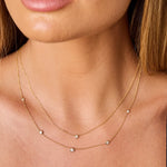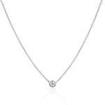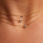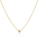 Our Diamond Solitaire Bezel Necklace features a round brilliant-cut diamond effortlessly balanced within a minimal gold bezel. Anchored by a delicate but sturdy 14K cable chain, this is a staple necklace for any stack. Wear this solid 14K necklace everyday!