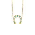 Our Turquoise Horseshoe Necklace is crafted from 14k gold and set with natural turquoise stones. A beautiful pop of color for your neckline. Wear this charm for good luck and great style!