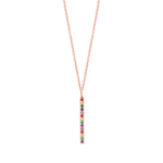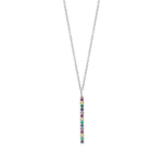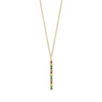 The 14K Short Bar Rainbow Necklace is handset with approx. 0.10ct of gemstones including emerald, yellow sapphire, pink sapphire and blue sapphire.