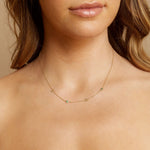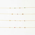 The 14k word spell necklaces are crafted with a .07ct gemstone. Choose the word that fits you best!